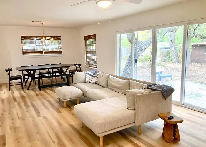 Strategically located, the Hideaway allows easy access to local attractions and the charming town of Bertram. Explore nearby hiking trails, tranquil lakes, or venture into historical sites, making for an enriching experience. Ideal for both adventure seekers and those seeking relaxation, the New Modern Hill Country Hideaway is the ultimate destination for an unforgettable escape into nature.